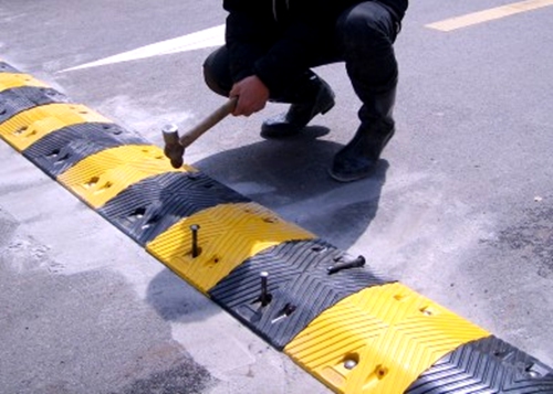 安裝在公路上使經(jīng)過的車輛減速的交通設施,形狀一般為條狀,也有點狀的,材質主要是橡膠,也有是金屬的,一般以黃色黑色相間以引起視覺注意,使路面稍微拱起以達到車輛減速目的,一般設置在公路道口、工礦企業(yè)、學校、住宅小區(qū)入口等需要車輛減速慢行的路段和容易引發(fā)交通事故的路段,是用于減速機動車、非機動車行使速度的新型交通專用安全設置。減速帶很大程度減少了各交通要道口的事故發(fā)生,是交通安全的新型專用設施。汽車在行駛中既安全又起到緩沖減速目的,提高交通道口的安全。
