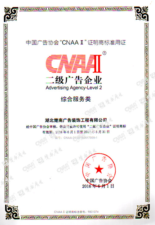 國家二級(jí)廣告企業(yè)資質(zhì)